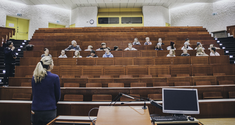 Unter Begleitung der Lehrerin Gerda Bubendorfer und dem Schuldirektor Hanspeter Wagner besuchten uns die SchülerInnen der NMSK Reutte am Campus Technik der Uni Innsbruck. Nach einer Einführung, die in einem großen Hörsaal stattfand (siehe Titelbild), bestaunten die SchülerInnen biologische Exponate in einem Raritätenkabinett. Anschließend erkundeten wir die Unibibliothek und nach einer kurzen Mittagspause untersuchten wir unsere Eisproben, welche wir gemeinsam am Jamtalferner gesammelt hatten. In Kleingruppen rotierten die SchülerInnen durch 4 Stationen mit unterschiedlichem wissenschaftlichen Hintergrund: es wurde durch verschiedene Größenskalen mikroskopiert – von der Stereolupe bis hin zum Elektronenmikroskop und sie kultivierten Bakterien aus dem Eis – es war ein höchst intensiver Tag im Labor!